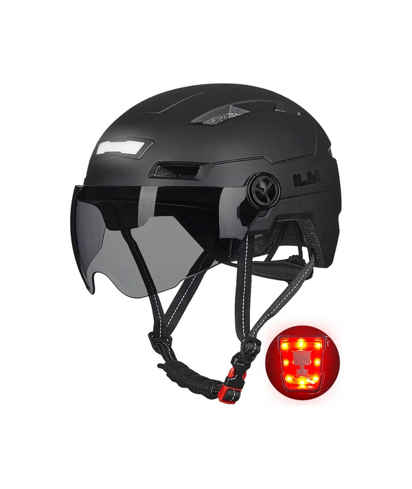 ILM Adult Bike Helmet with USB Rechargeable LED Front and Back Light Mountain&Road Bicycle Helmets for Men Women Removable Goggle Cycling Helmet E3-10L